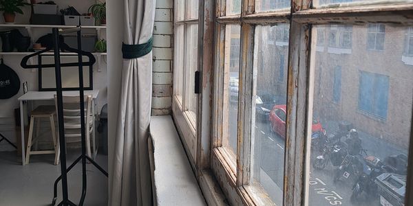 The studio has a high ceiling at 4m and the floor space measures 7.5m by 4.6m.